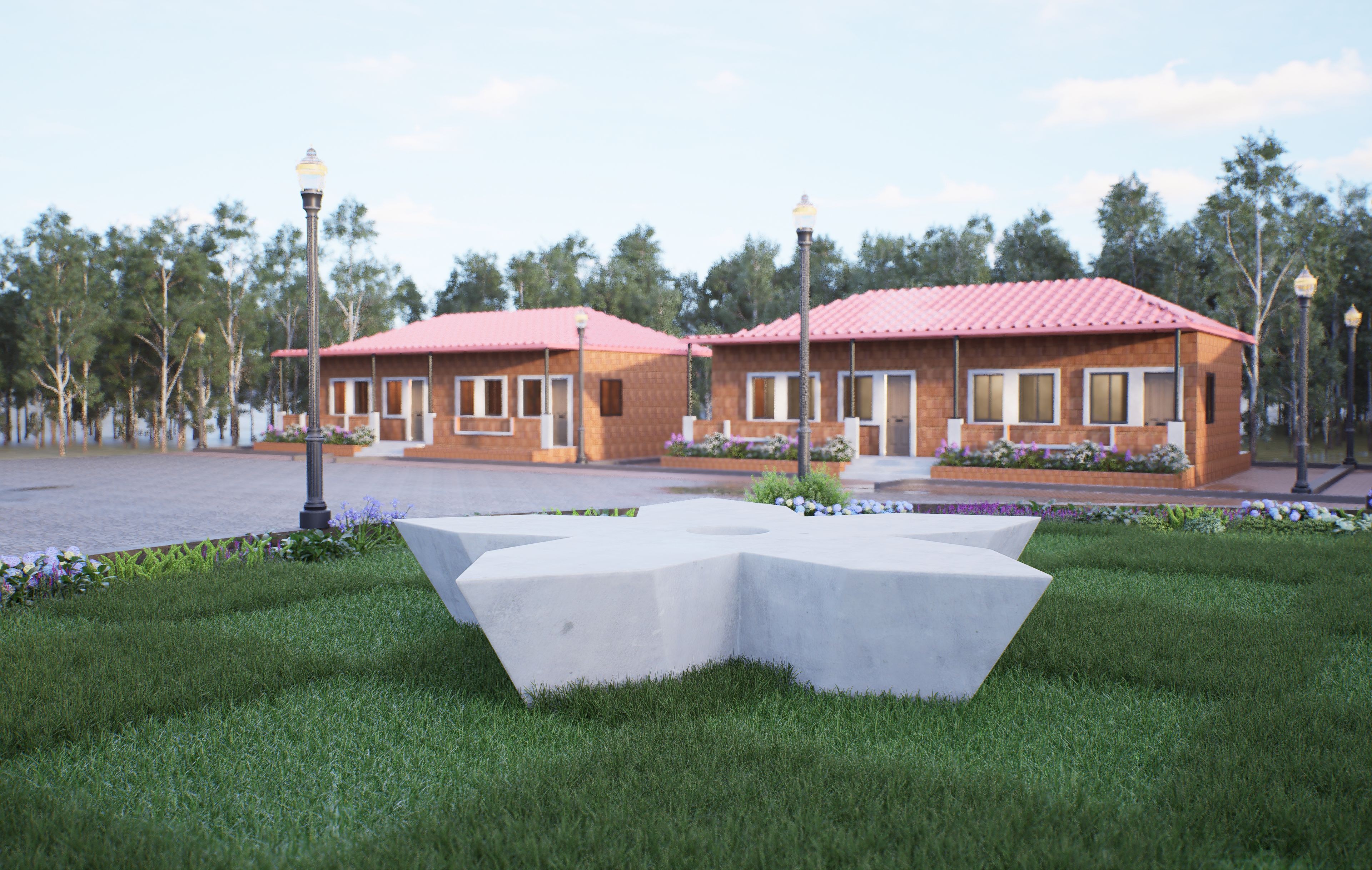 Botanical Accuracy: Precise 3D models for all plant species, ensuring the scale, density, and natural clustering of the greenery reflect the architectural planting plan.